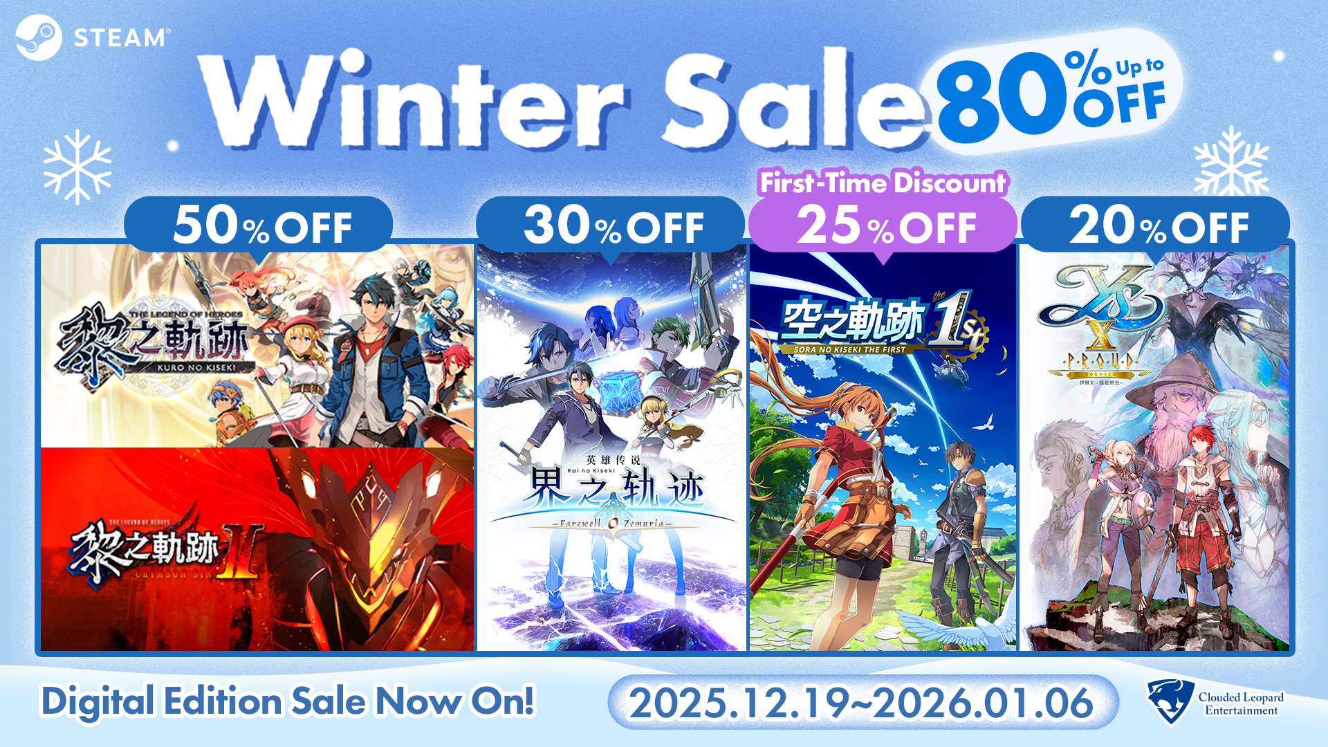 「CLE STEAM WINTER SALE」Sora no Kiseki the 1st(Chinese & Korean versions)gets first-time discount!! More Fan Favorite Games Up To 80% OFF! Limited Time offer: From now until Jan 6, 2026.