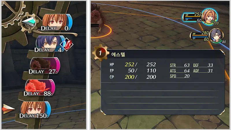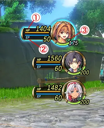 ①HP(체력)②EP(아츠에 사용)③CP(크래프트에 사용)