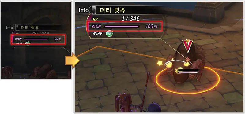 스턴 게이지가 100%에 달하면 스턴이 발생합니다.