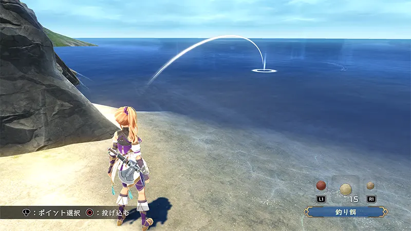 필드와 던전 내의 수면에 물고기 그림자가 비치는 포인트에서는 「낚시」를 할 수 있다.
