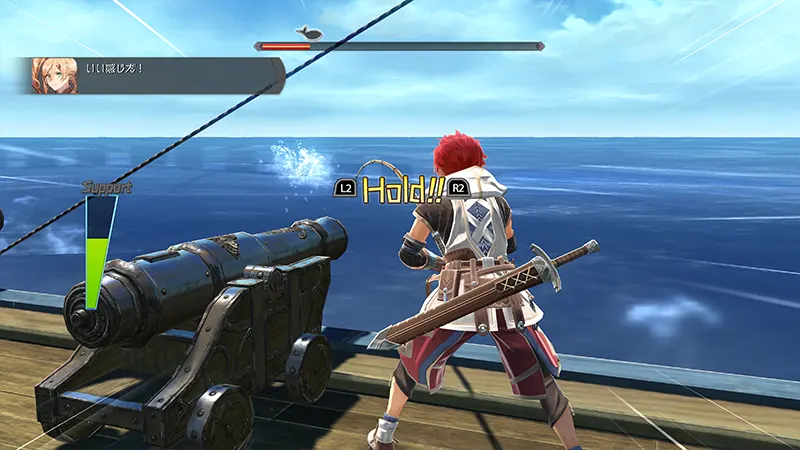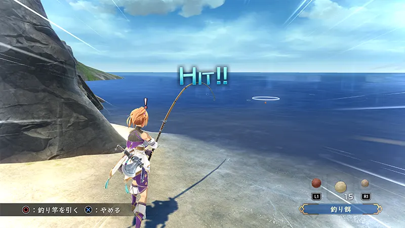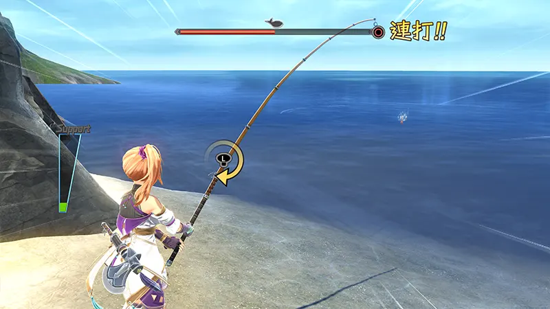 Hit 후, 상황에 따라 버튼을 연타하거나 스틱을 조작하면 화면 상단의 낚시 게이지가 상승하며, 최대치가 되면 낚시 성공!