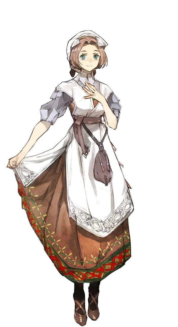 명랑하고 싹싹한 여성이지만 의외로 대범한 면이 있으며, 해적 공주인 카자에게도 자연스럽게 대한다.