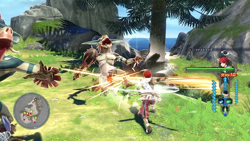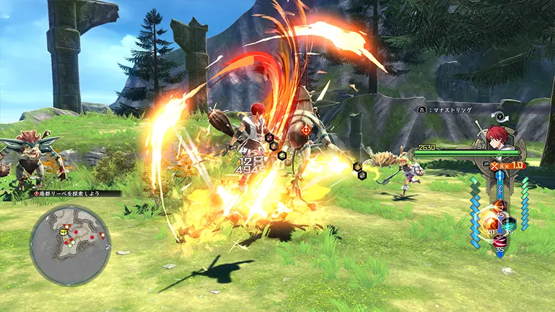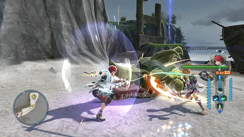 때로는 거리를 두고 선 아돌과 카자를 번갈아 조작해 연계시켜 공략하는 것이 필요하다.