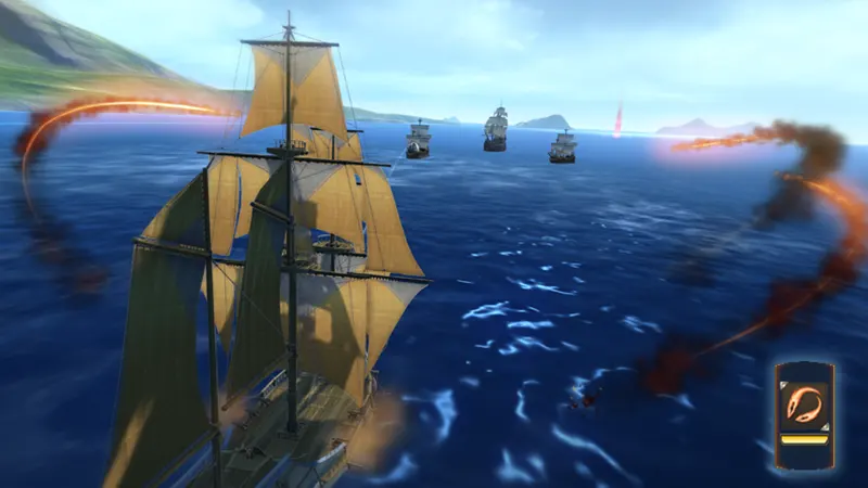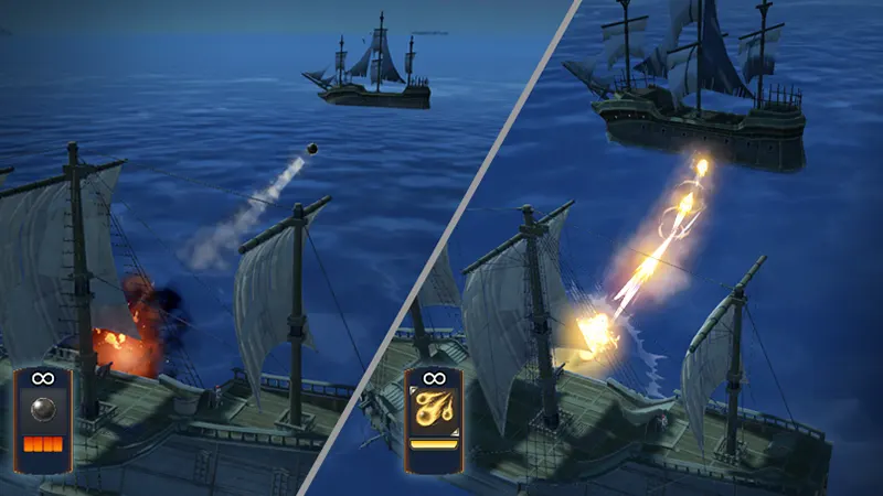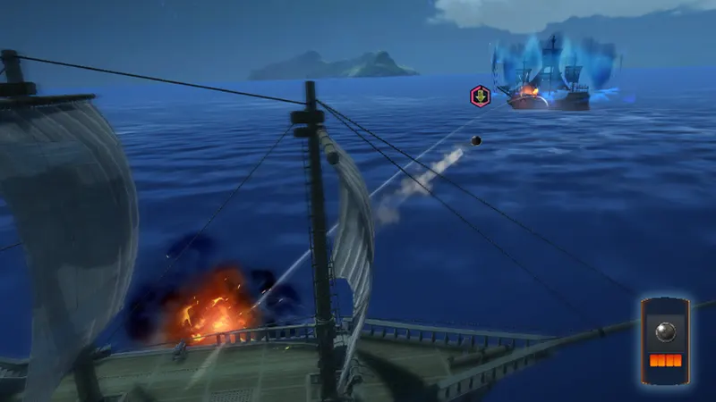 與敵船交戰時,需使用砲擊與「接舷攻擊」應戰。此外,還可藉由「奪還戰」解放遭到佔領的島嶼。