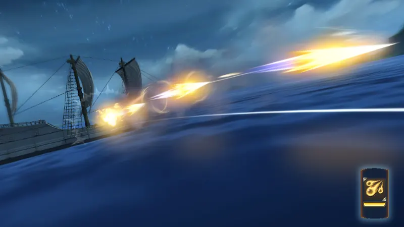 雖可造成大量傷害,但射程較短,且只能從船身側面發射。進入射程後將會顯示指示,這時就看準時機按下吧。