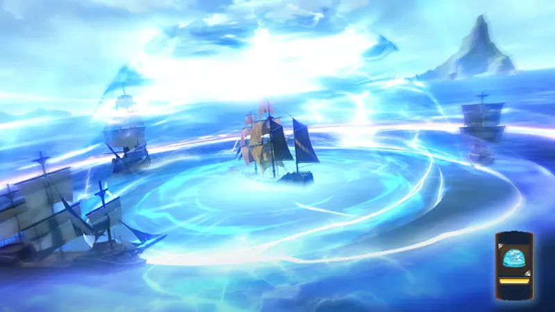 靠近海上的「黃金圖示」,將會展開與強敵船團的戰鬥。