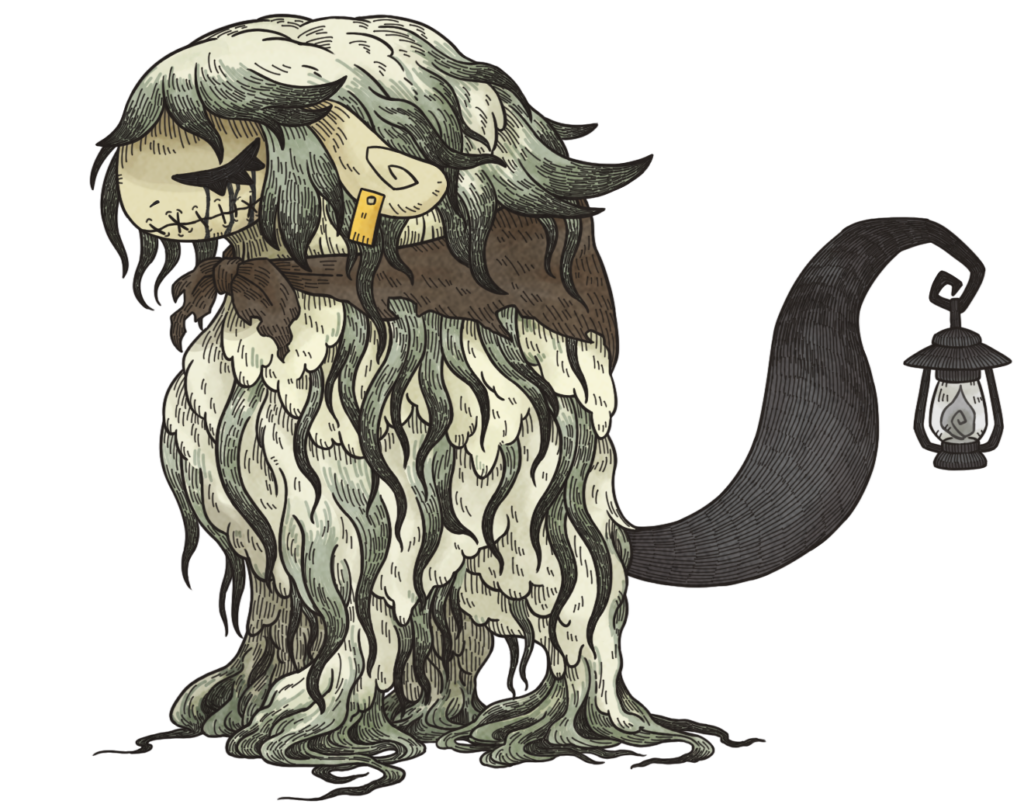 거대한 양의 모습을 한 괴물인 「늑대 공주」로 변이한 소녀.
