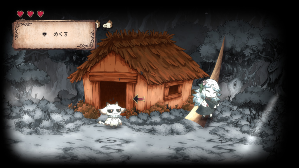 「넘기기」를 사용하면 뒤쪽에 숨겨진 새로운 길을 찾아내거나, 반대로 몸을 숨겨 적을 피할 수 있는 등… 그림책 세계를 「먹어서 파괴」하는 것 외에도 다양한 형태로 공략할 수 있습니다!