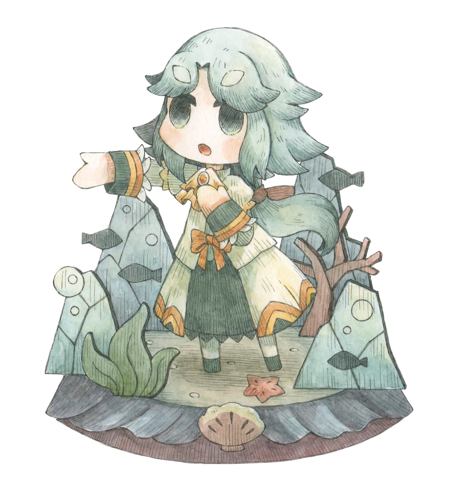 통칭 『메르』. 이서관의 괴물 중에서도 악명 높은 전설의 괴물. 인간에게 상처를 입힌 죄로 저주의 목걸이가 채워진 채, 이서관의 어느 방에 갇혀 있었다. 다른 이형이나 사신병에 의해 만들어진 것을 먹을수록 강해지는 힘인 『종이 먹기』의 사용자로, 과거의 힘을 되찾아 저주에서 벗어나기 위해 모노에게 협력을 제안한다.