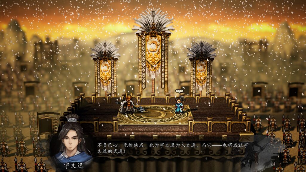 以细腻绚丽的像素风格,描绘其他作品鲜少细述的中国古代武林盛景。