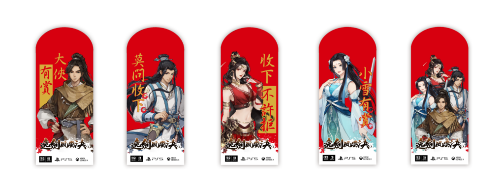 電玩展期間在雲豹娛樂攤位完成試玩的玩家, 將可獲得特製『逸劍風雲決』 會場限定馬躍吉祥紅包袋組乙組。(*1)